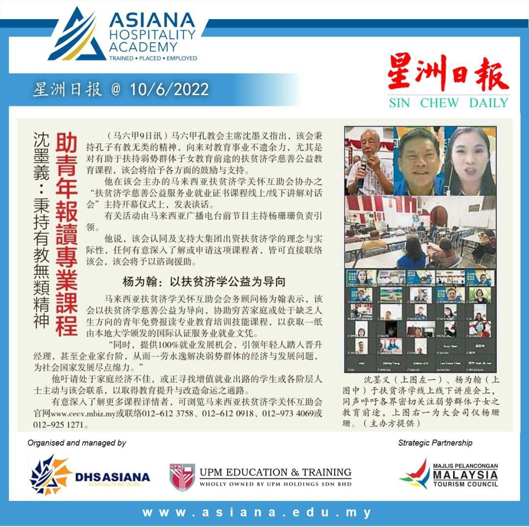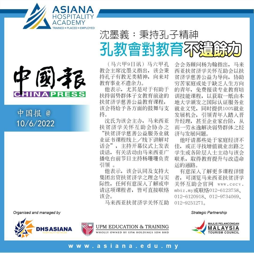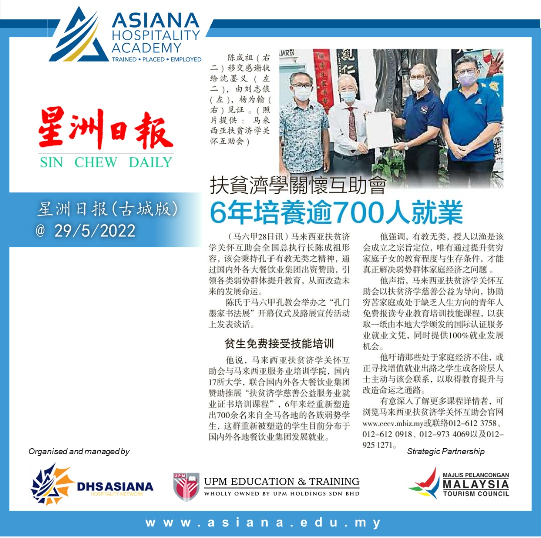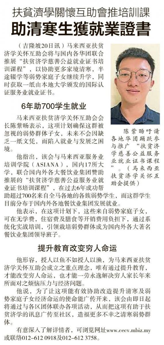 汇聚国际星级餐饮业集团赞助特设 “ 扶贫济学再生教育培训课程 ”, 协助家庭经济不佳, 或正寻找增值就业出路之学生, 倘各阶层有志之士报名申请就读, 以获取国内外大专院校颁发服务业就业证书, 协助打开酒楼邮轮等大型餐饮集团之就业发展通路.