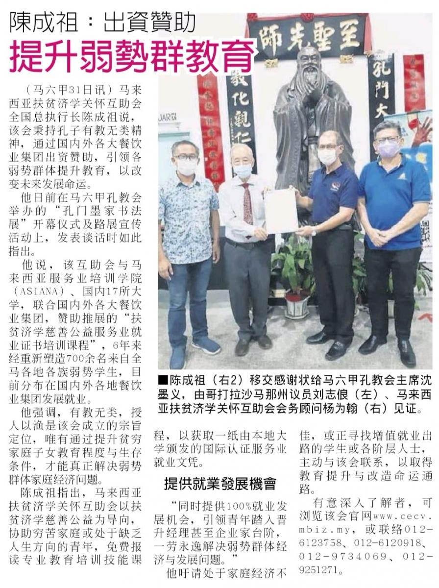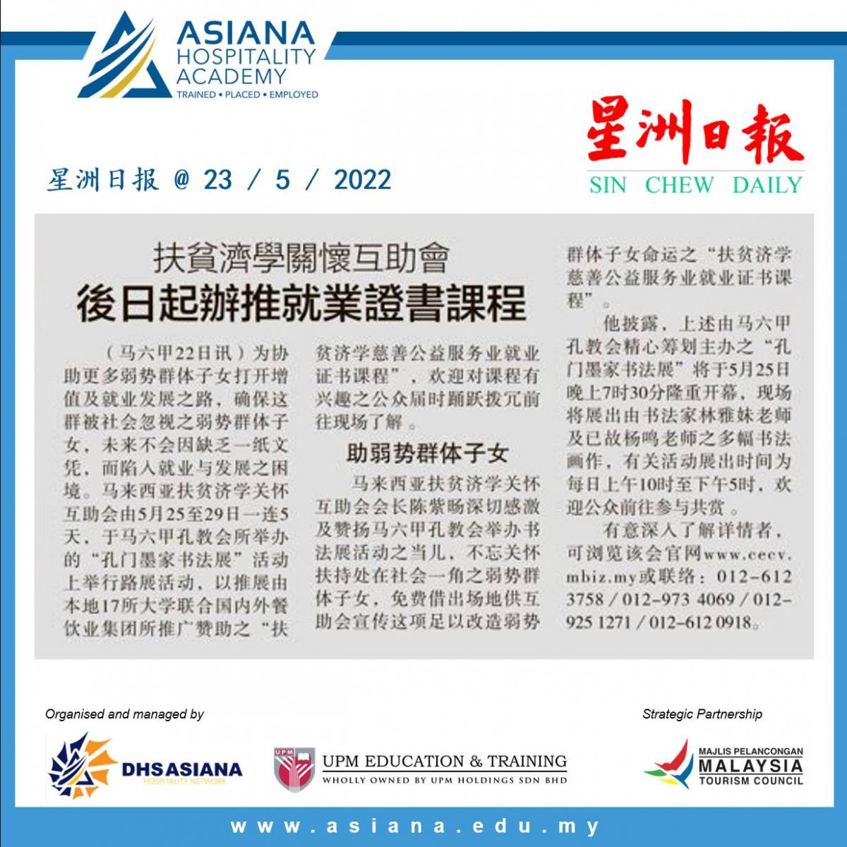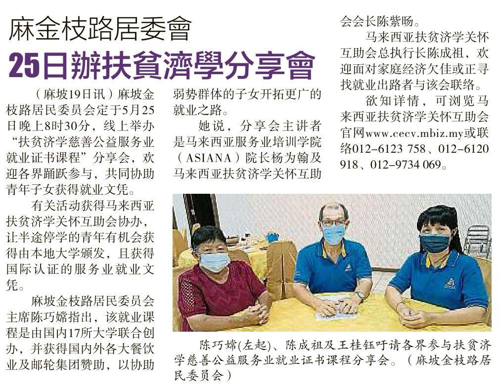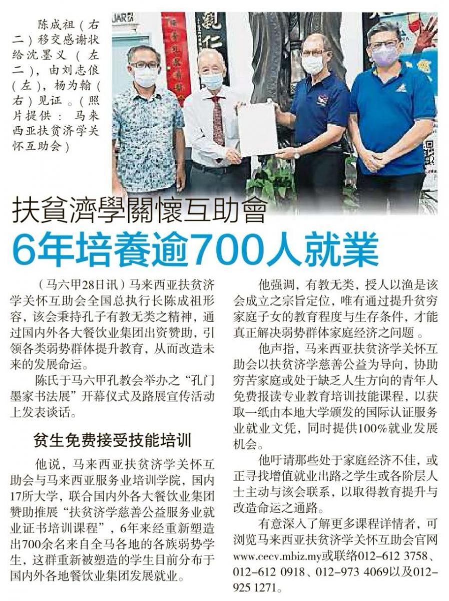 汇聚国际星级餐饮业集团赞助特设 “ 扶贫济学再生教育培训课程 ”, 协助家庭经济不佳, 或正寻找增值就业出路之学生, 倘各阶层有志之士报名申请就读, 以获取国内外大专院校颁发服务业就业证书, 协助打开酒楼邮轮等大型餐饮集团之就业发展通路.